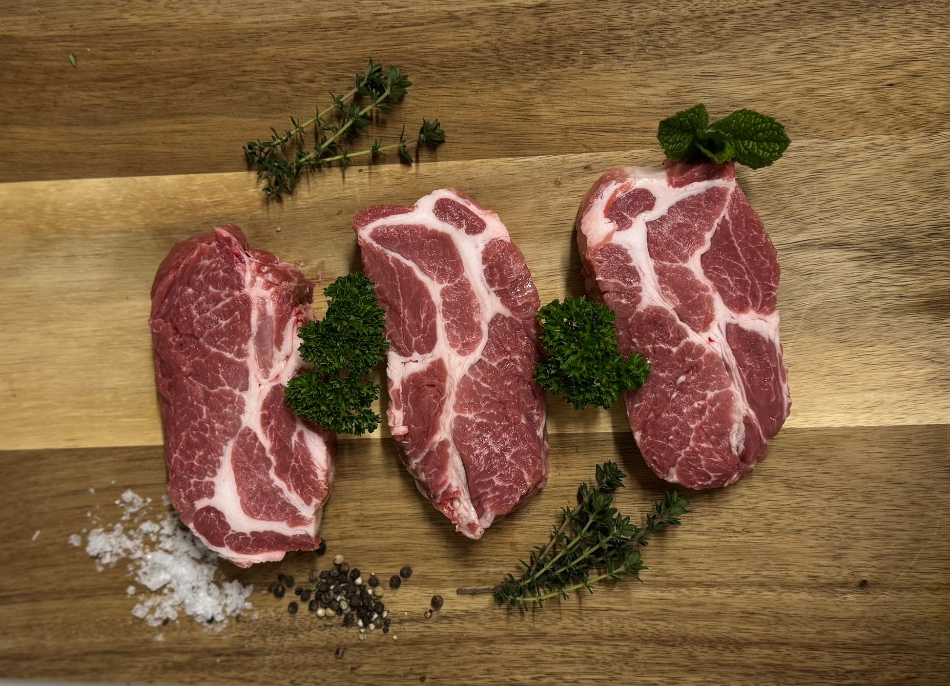 Pork scotch steaks are cut from the shoulder, known for their rich marbling and juicy, tender texture. They’re full of flavor and perfect for grilling, pan-frying, or slow cooking. A versatile and satisfying cut for any meal.